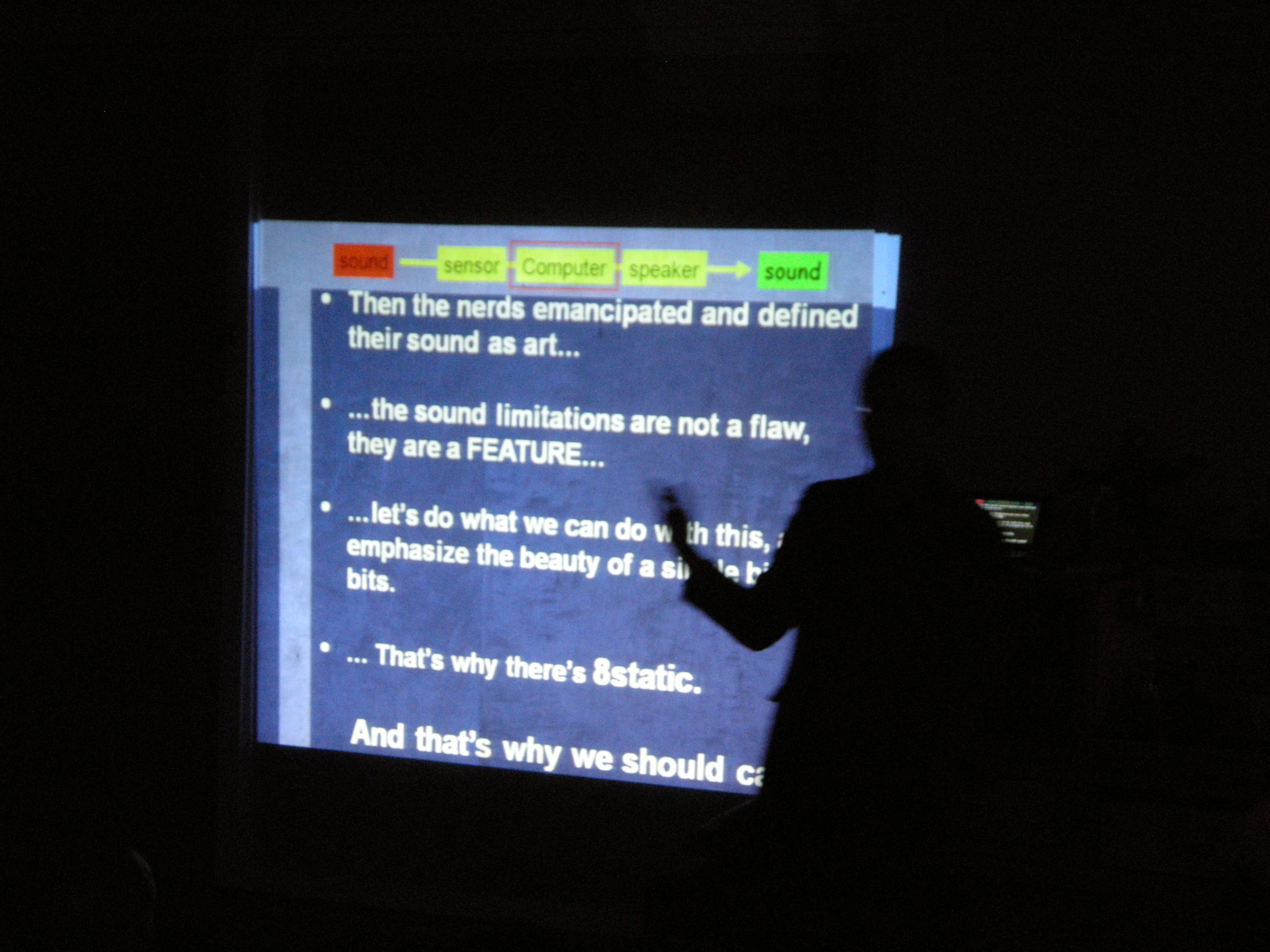 "Then the nerds emancipated and defined their sound as art.../ ...the sound limitations are not a flaw, but a FEATURE.../ ...let's do what we can do with this, and emphasize the beauty of a single bit or bits./ ... That's why there's 8static./ And that's why we should care."