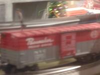 Model rail station. Ads: "We'll wait up for you/ Plenty of trains [something something] Grand Central [something]" and "Do you commute to Westchester or Connecticut? Your car doesn't have to. Metro North Railroad. Going your way."
