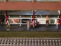 Model rail station. Ads: "We'll wait up for you/ Plenty of trains [something something] Grand Central [something]" and "Do you commute to Westchester or Connecticut? Your car doesn't have to. Metro North Railroad. Going your way."